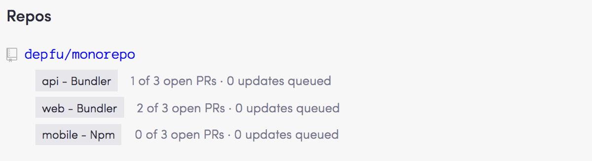 That means depending on the amount of folders you have, your monorepo can get a lot more than 7 PRs from Depfu. For example, you would get a maximum of 30 PRs from us if you had 10 folders in your monorepo. We’re not super happy with this solution yet and would like to see some more usage to come up with something better.