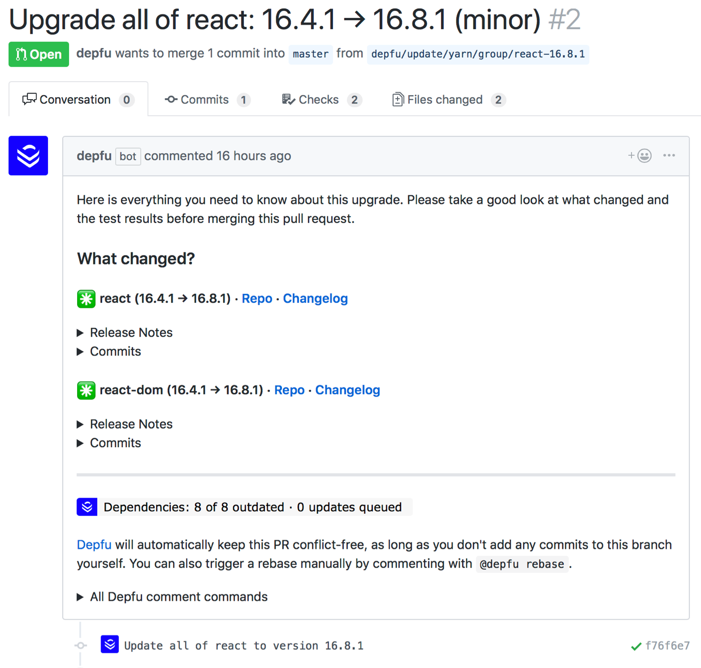 at the same time, so getting individual PRs for each of them from Depfu is not only more noise than necessary, it’s pretty much just wrong.